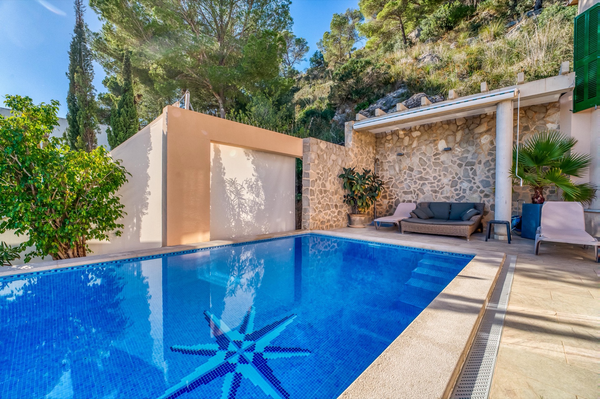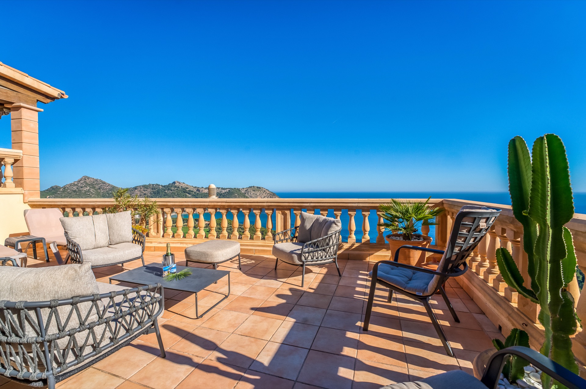 Villa Ventimar thront auf einem Hügel über der malerischen Bucht von Canyamel und bietet Ihnen einen atemberaubenden 180°-Panoramablick über das tiefblaue Mittelmeer. Die 250 m² große Villa erstreckt sich über drei Ebenen mit großzügigen Terrassen, einem beheizbaren Infinity-Pool und drei elegant eingerichteten Schlafzimmern.